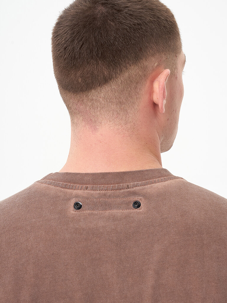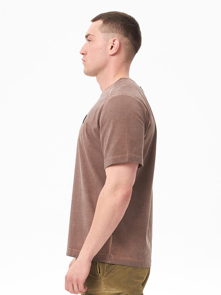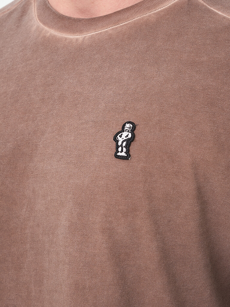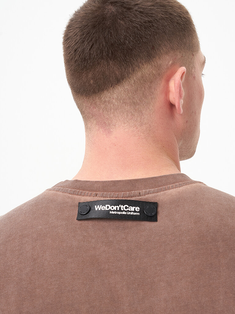We Don’t Care GD Embroidered Logo T-shirt — футболка прямого кроя из тяжелой хлопковой ткани. Неравномерность цвета достигнута путём окрашивания изделия по технологии Garment Dyed. Смещенный плечевой шов придает дополнительный комфорт при носке. Слева на груди расположен шеврон Manneken Pis, а на спине съемный патч с логотипом бренда We Don’t Care. Флажок с камуфляжем M90 Splinter, вшитый в боковой шов дополняет футболку деталями.