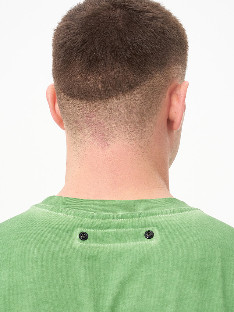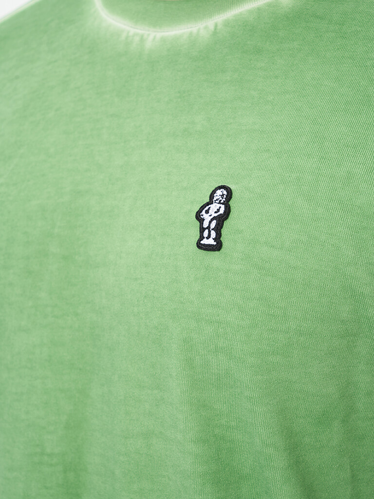 We Don’t Care GD Embroidered Logo T-shirt — футболка прямого кроя из тяжелой хлопковой ткани. Неравномерность цвета достигнута путём окрашивания изделия по технологии Garment Dyed. Смещенный плечевой шов придает дополнительный комфорт при носке. Слева на груди расположен шеврон Manneken Pis, а на спине съемный патч с логотипом бренда We Don’t Care. Флажок с камуфляжем M90 Splinter, вшитый в боковой шов дополняет футболку деталями.