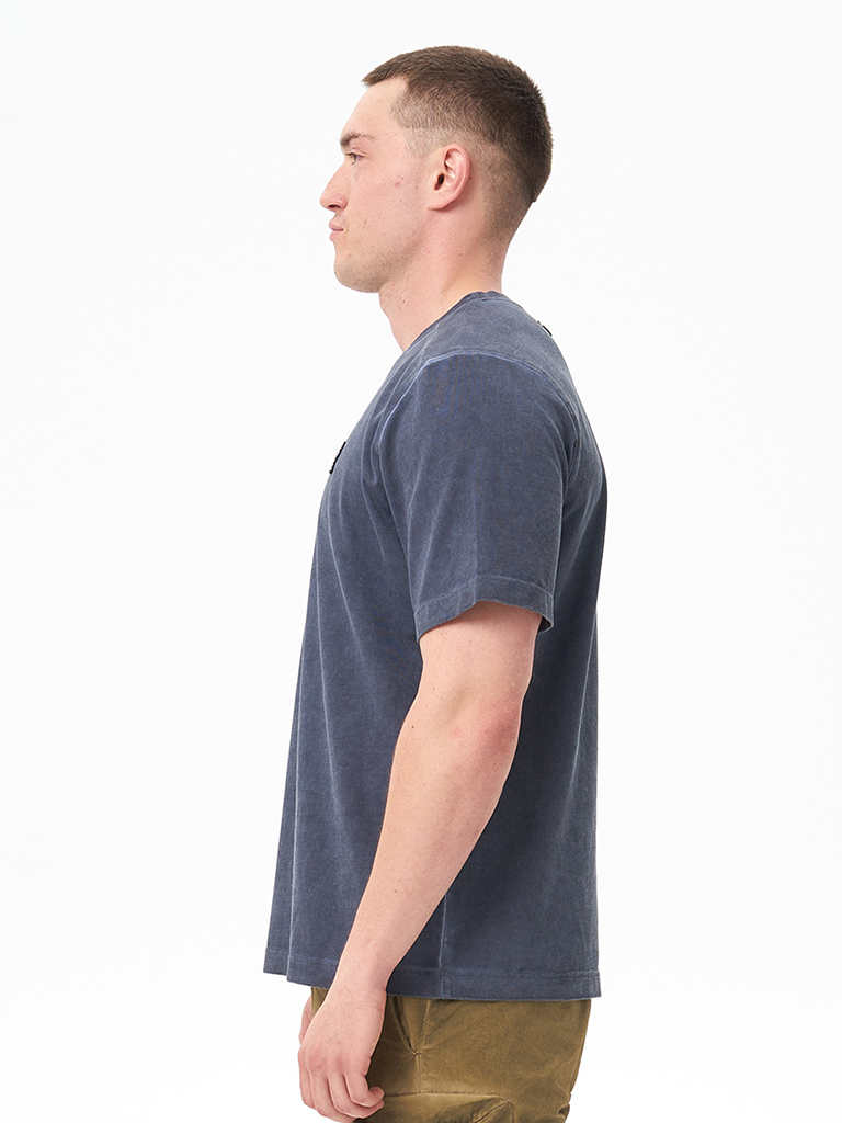 We Don’t Care GD Embroidered Logo T-shirt — футболка прямого кроя из тяжелой хлопковой ткани. Неравномерность цвета достигнута путём окрашивания изделия по технологии Garment Dyed. Смещенный плечевой шов придает дополнительный комфорт при носке. Слева на груди расположен шеврон Manneken Pis, а на спине съемный патч с логотипом бренда We Don’t Care. Флажок с камуфляжем M90 Splinter, вшитый в боковой шов дополняет футболку деталями.