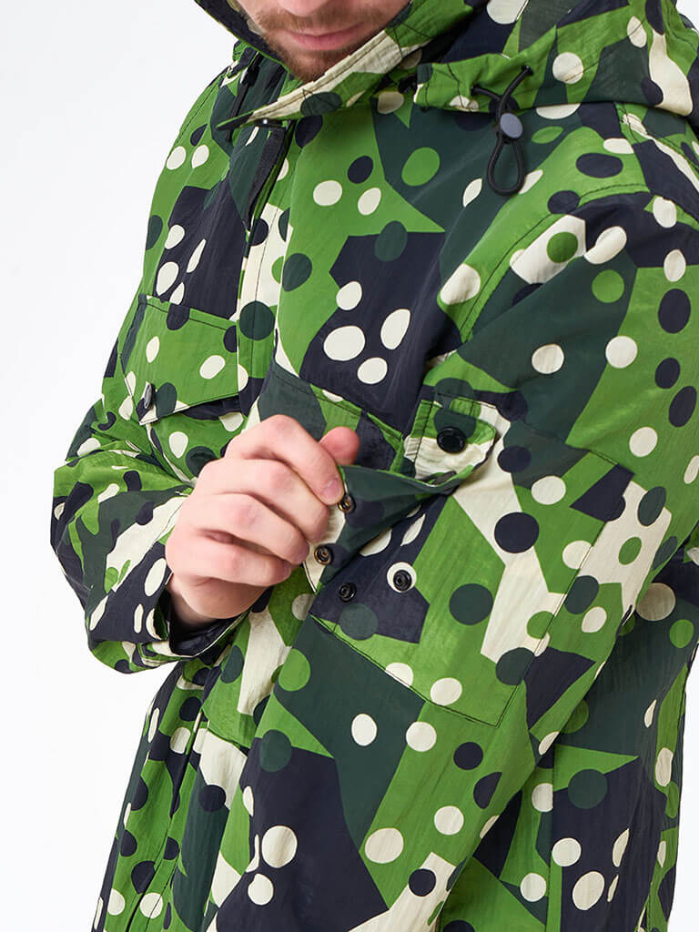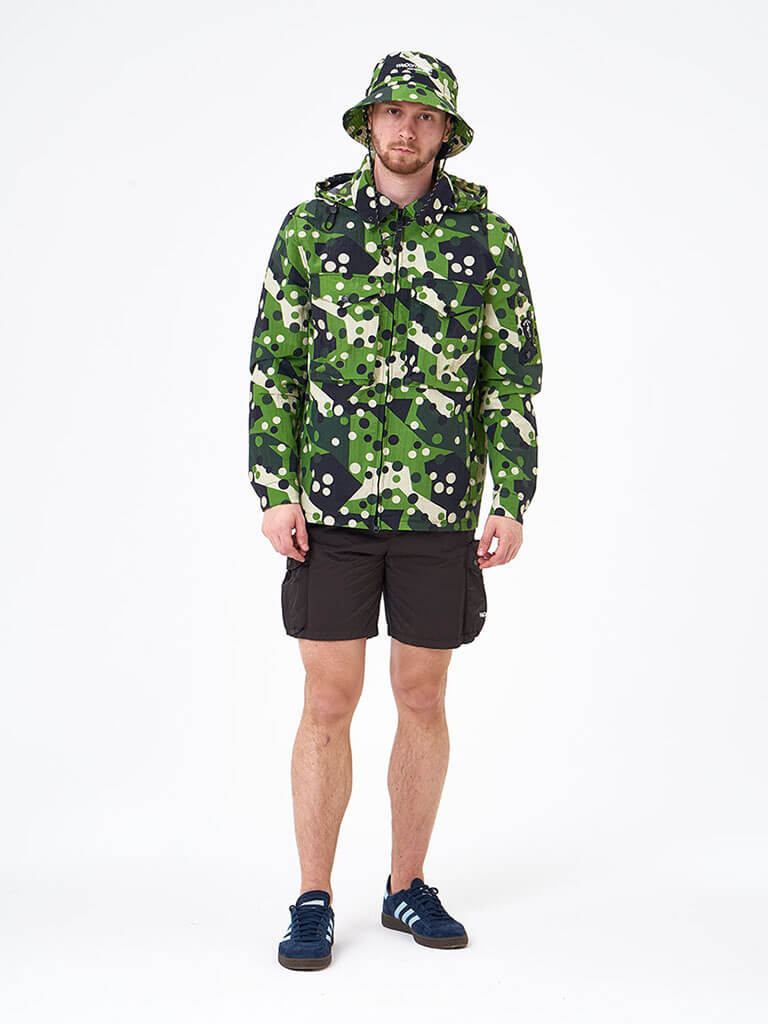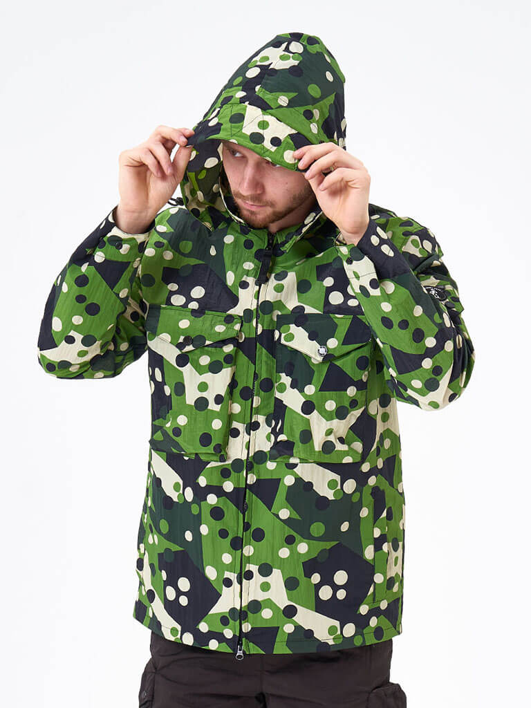 We Don’t Care Hooded Overshirt — легкая куртка из нейлона с эффектом мятой ткани и защитой от дождя и ветра. Вдохновляясь армейской тематикой, мы дополнили классический овершот вместительными передними карманами на кнопках и съемным капюшоном на молнии. Куртка имеет удобный внутренний карман. Капюшон регулируется шнурами с фиксаторами, а козырек на капюшоне при необходимости фиксируется на кнопки. Карман на рукаве, с логотипом бренда, как отсылка к военной униформе. Фурнитура бренда YKK.