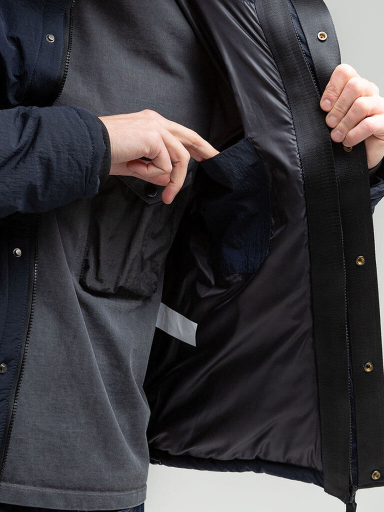 Зимняя куртка из материала Liquid Nylon, с утеплителем нового поколения Shelter® Loft. Благодаря своей структуре и технологии окрашивания, ткань меняет оттенок при различном освещении. Утеплитель Shelter® Loft обеспечивает превосходную теплозащиту, сохраняя легкий вес, эффективную воздухопроницаемость, мягкость и повышенный объем, сравнимый с пухом. Снаружи куртки 2 кармана на кнопках. Внутри большой карман на молнии и карман на липучке. В капюшоне и по низу куртки есть шнуры с фиксатором.