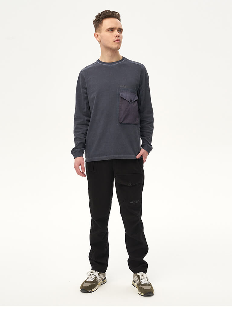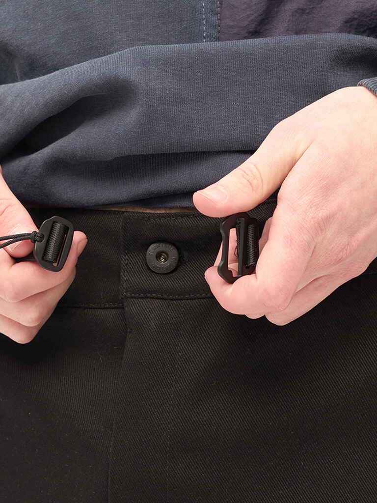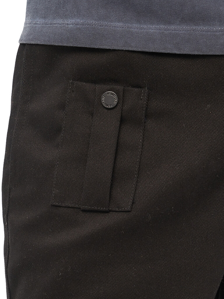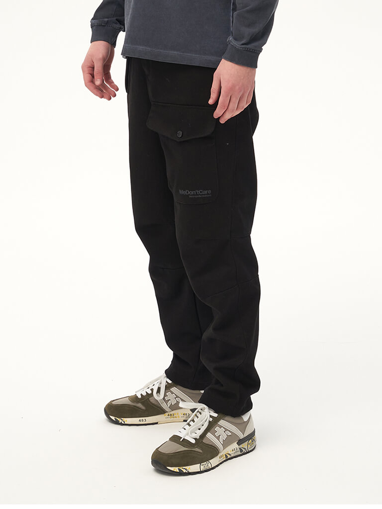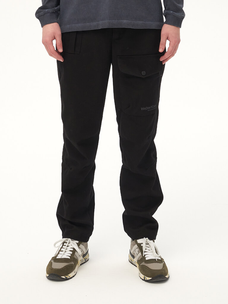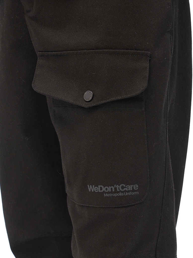 Хлопковые карго брюки вдохновленные архивными моделями армейских штанов 40-х годов прошлого столетия. Для изготовления брюк использовался твилл плотностью 8 унций. Гульфик застегивается на молнию и джинсовую пуговицу. Пояс надежно фиксируется стропой с легкой металлической пряжкой. Брюки имеют 2 передних кармана на кнопках, боковые карманы для рук и 2 задних кармана. На левой штанине расположен логотип бренда We Don’t Care.