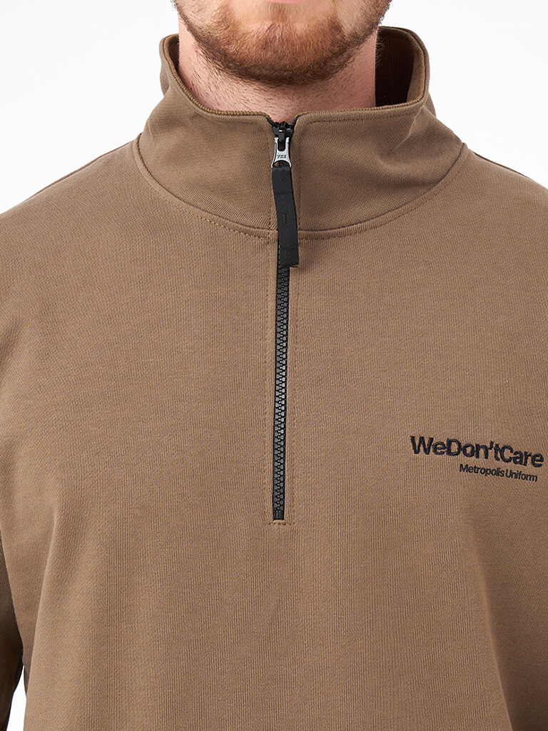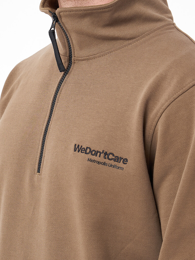 We Don’t Care Quarter Zip Sweatshirt — удобные толстовки на каждый день из натурального хлопка средней плотности. Прямой крой обеспечивает наилучшую посадку и дополнительный комфорт при носке, а 100% хлопок плотностью 340 г/м2, делает их идеальными для летнего сезона. Высокий воротник застегивается на молнию. Комбинированный брендинг из вышивки и принта дополняет толстовку деталями. На изделии используется фурнитура бренда YKK.