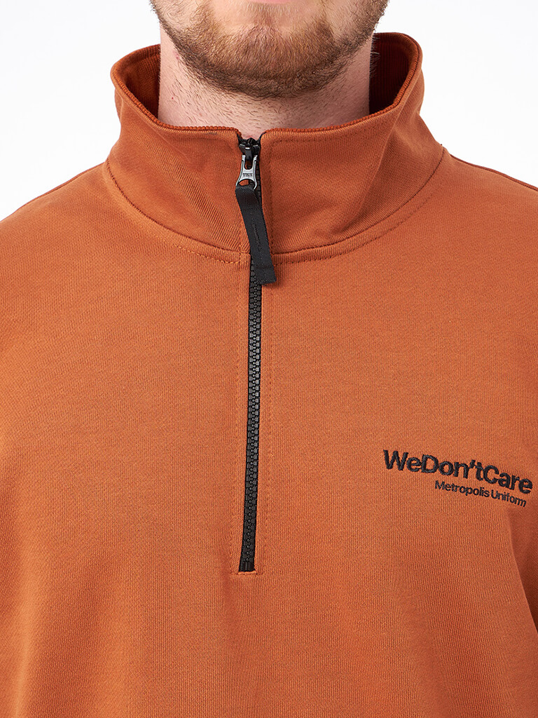 We Don’t Care Quarter Zip Sweatshirt — удобные толстовки на каждый день из натурального хлопка средней плотности. Прямой крой обеспечивает наилучшую посадку и дополнительный комфорт при носке, а 100% хлопок плотностью 340 г/м2, делает их идеальными для летнего сезона. Высокий воротник застегивается на молнию. Комбинированный брендинг из вышивки и принта дополняет толстовку деталями. На изделии используется фурнитура бренда YKK.